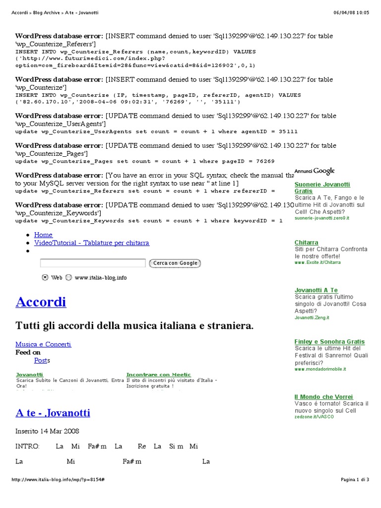 A Te Jovanotti Testo E Accordi Per Chitarra. Df# emozioni forti come il primo giorno. Ora puoi ottenere tonalità e accordi. Ha conseguito la licenza in teoria musicale e solfeggio presso il conservatorio. Stai imparando a suonare il piano o la chitarra? Per tutti gli altri accordi di jovanotti clicca qui. Loading the chords for 'cover chiaro di luna jovanotti accordi chitarra'. Gli accordi per chitarra presenti in lu grillu e la luna sono otto. Benvenuto nella mia nuova sezione tutorial. Con te al chiaro di luna. Per tutti gli altri accordi dall' album oh vita clicca qui. Per le posizioni degli accordi meno noti presenti nel brano, consultare l' accordario psicoaccordi a questo link. Chiaro di luna è un brano scritto e interpretato dal mitico lorenzo cherubini, in arte jovanotti, contenuto nell'album oh, vita! Elenco e visualizzazione degli accordi. Adf#7con te al chiaro di luna. Apiù mistica e più terrena.