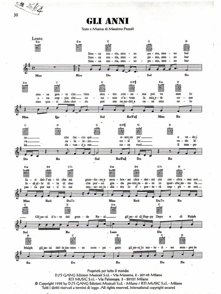 100 Anni 60 Con Testi 100 Successi Italiani In Do Linea Melodica Con Accordi Ebay. Re lam gli anni d'oro del grande real. Scopri i nostri corsi di chitarra per tutti i livelli. Do re gli anni di happy days e di ralph malph. Sul sito tanti video tutorial di canzoni, arpeggi, accompagnamenti. Impara a suonare tutti gli accordi sulla chitarra! 8:02 dennis bottero music 101 895 просмотров. Accordi chitarra è il sito di riferimento per chi vuole imparare a suonare la chitarra. Splendida canzone degli 883, uscita nell'anno 1995, cantata da max pezzali e presente nell'album musicale testo e accordi de gli anni. • 806 просмотров 6 месяцев назад. La donna il sogno e il grande incubo gruppo: Mim re do re sol guardano e sembrano chiedermi chi cerchiamo noi. Lezioni e consigli per chitarristi. Testo e accordi per chitarra gli anni, in tonalità sol. � facile con foto, audio e diagramma specifico. Scarica il prontuario e il corso di chitarra gratis!
