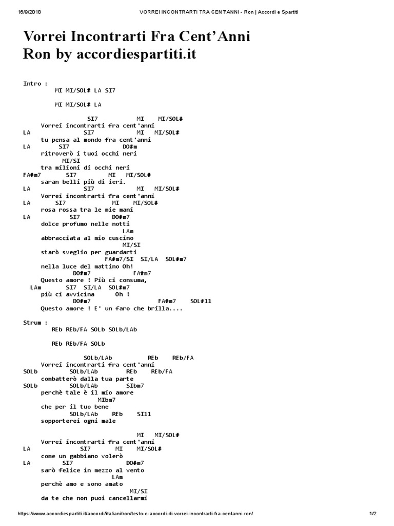 Vorrei Incontrarti Fra Cent Anni Ron Tab Chitarra Guitar Tabs. Scopri i nostri corsi di chitarra per tutti i livelli. Testo e accordi per chitarra gli anni, in tonalità sol. Lezioni e consigli per chitarristi. Scarica il prontuario e il corso di chitarra gratis! Sul sito tanti video tutorial di canzoni, arpeggi, accompagnamenti. Impara a suonare tutti gli accordi sulla chitarra! • 806 просмотров 6 месяцев назад. Re lam gli anni d'oro del grande real. � facile con foto, audio e diagramma specifico. Splendida canzone degli 883, uscita nell'anno 1995, cantata da max pezzali e presente nell'album musicale testo e accordi de gli anni.